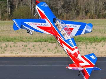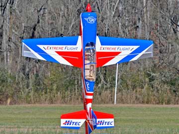 Modern computer radio with channel mixing capability and 5 high torque, Metal gear servos (300+ oz. in.) on control surfaces, standard servo on throttle. Hitec HSB-9380TH Highly recommended